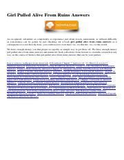 Read Girl Pulled Alive From Ruins Answers Kindle Editon online is a convenient and frugal way to read Girl Pulled Alive From Ruins Answers you love right from the comfort of your own home. Yes, there sites where you can get Kindle Editon "for free" but the ones listed below are clean from viruses and completely legal to use.